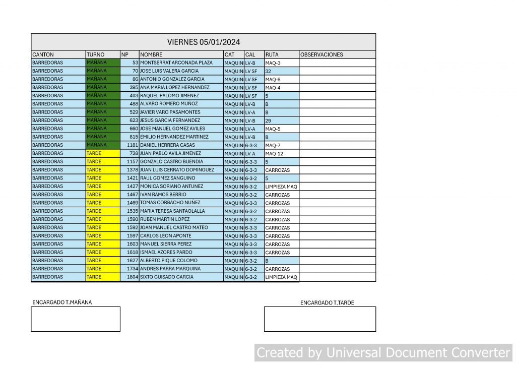 Todas las solicitudes para el cambio a turno de mañana están aceptadas. El cambio se realizará el día 01-07-2024 y terminará el 31-08-2024. Desde la fecha, el turno de mañana comenzará a las 06:00h y el de tarde a las 17:00h.